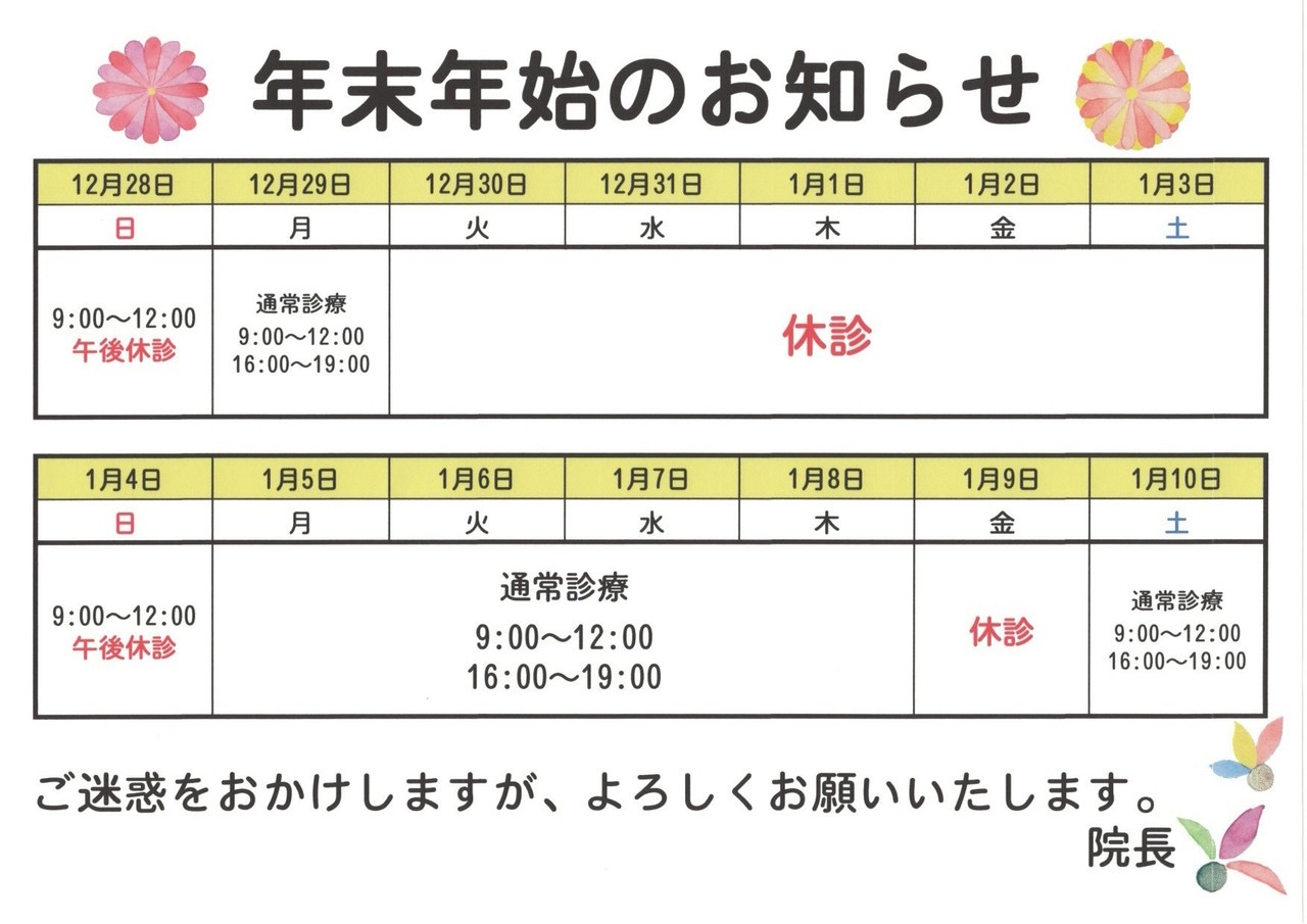 〜年末年始お知らせ〜